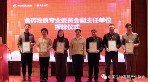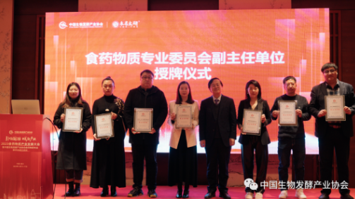 大会为中国生物发酵产业协会食药物质专业委员会的副主任单位举行了授牌仪式。于学军、王洁作为颁奖嘉宾进行授牌。